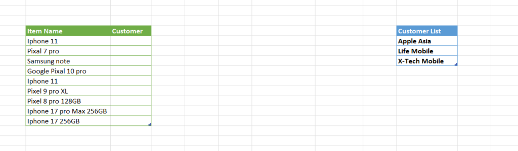 They sell these products to customers like Apple Asia, Life Mobile, and X-Tech Mobile. When recording sales, they enter customer names manually every time — and this is where the problem starts.