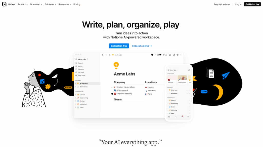 What it does: Manages projects, notes, and tasks with AI support.