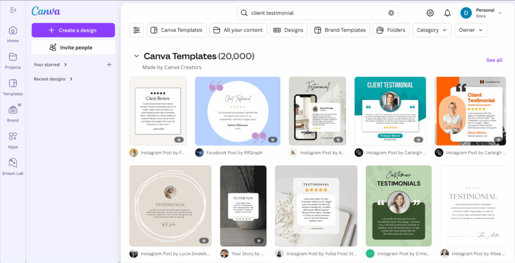 What it does: Creates social media posts, flyers, logos, and product ads with AI design assistance.